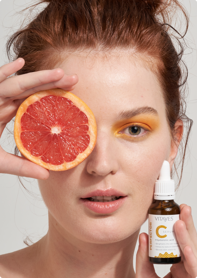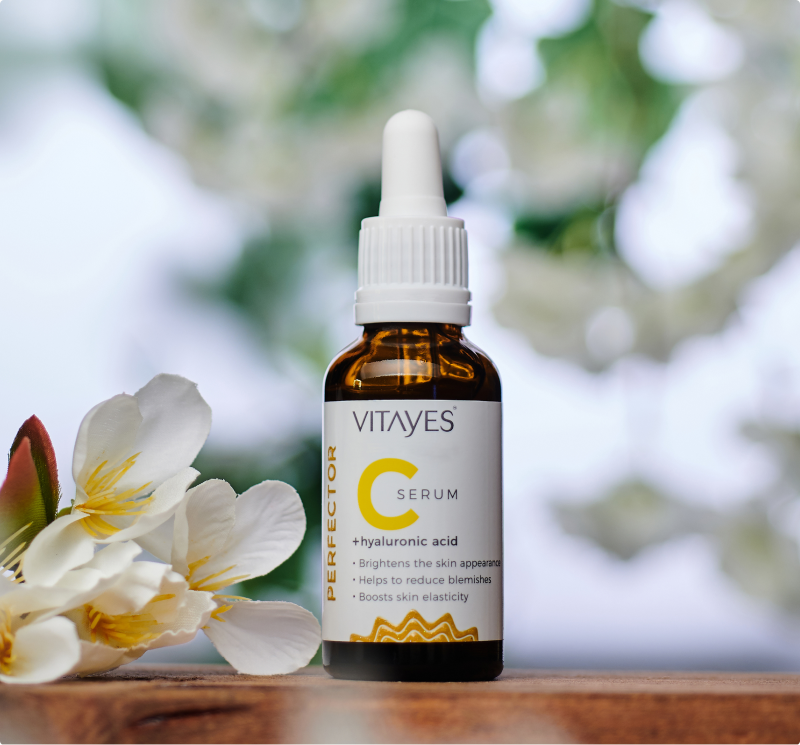 The VITAYES Perfector Vitamin C Serum supports you in the fight against skin imperfections and the visible signs of skin aging. The special active formula contains the optimal combination of concentrated organic vitamin C and high-dose hyaluronic acid for quickly visible and lasting results. Stimulates collagen production and reduces pigment spots and discoloration. Ideal for normal to dry skin. Naturally vegan and not tested on animals. Developed and manufactured in Germany.